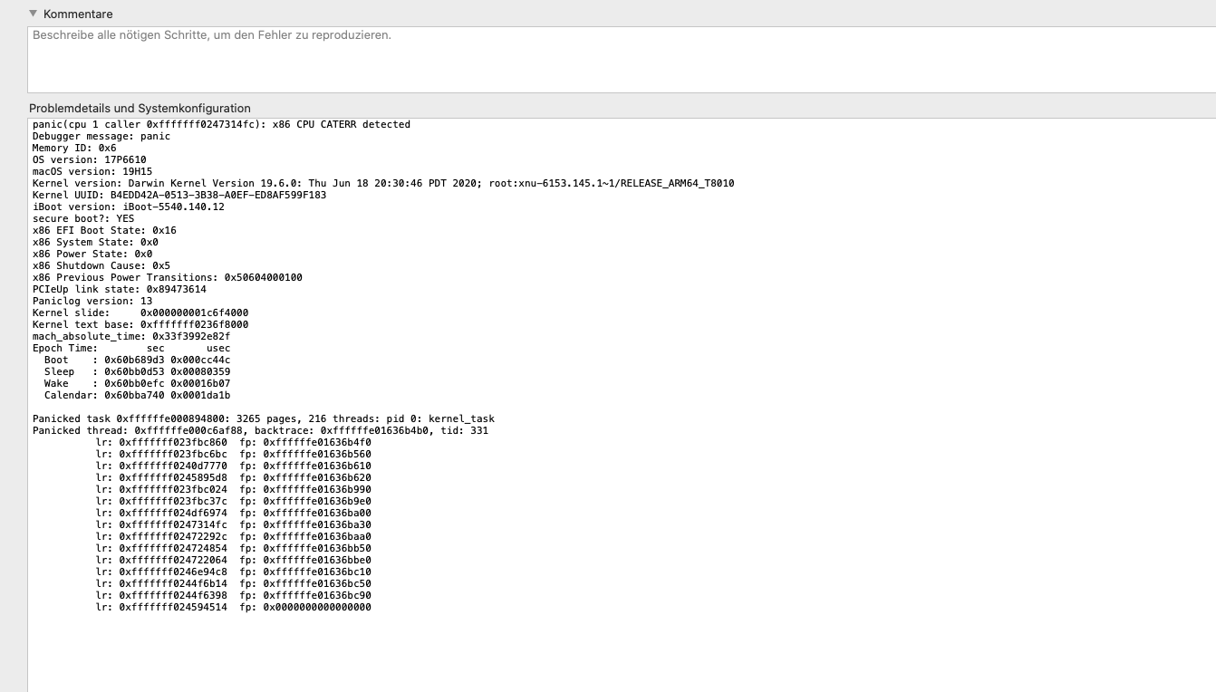 ich erhalte in letzter Zeit relativ häufig Kernel Panics wenn ich Musik mache. Ich hab bisher auch nicht wirklich herausfinden können, woran es letztendlich lag. (hab den Screenshot von der Fehlermeldung angehangen).