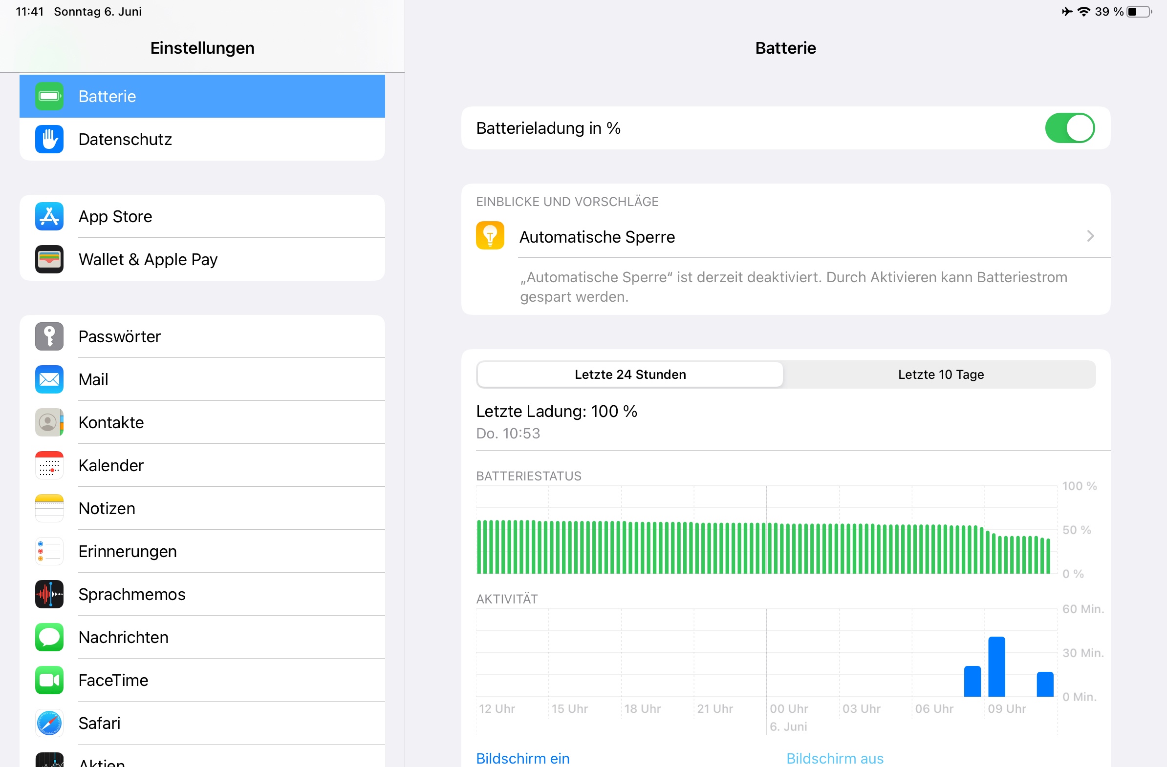 heute Morgen wollte ich es wie üblich raus holen und mein Spiel spielen. Tja was soll ich sagen? Tiefentladen. Tot. Komplett bei 0% obwohl ich NICHTS über Nacht gemacht habe! Es hing nicht am Strom, es war in der Tastensperre etc. Und trotzdem war’s bei 0% und ich konnte nicht wie üblich das iPad sobald am Kabel anschalten, egal was ich versucht habe. Erst nach ca 15 Minuten ist es endlich mal angegangen und hatte sage und schreibe 1% Akku geladen in der Zeit. Weiß einer woran das liegen könnte? Update ist iOS 14.6 also das aktuelle was erst kam.