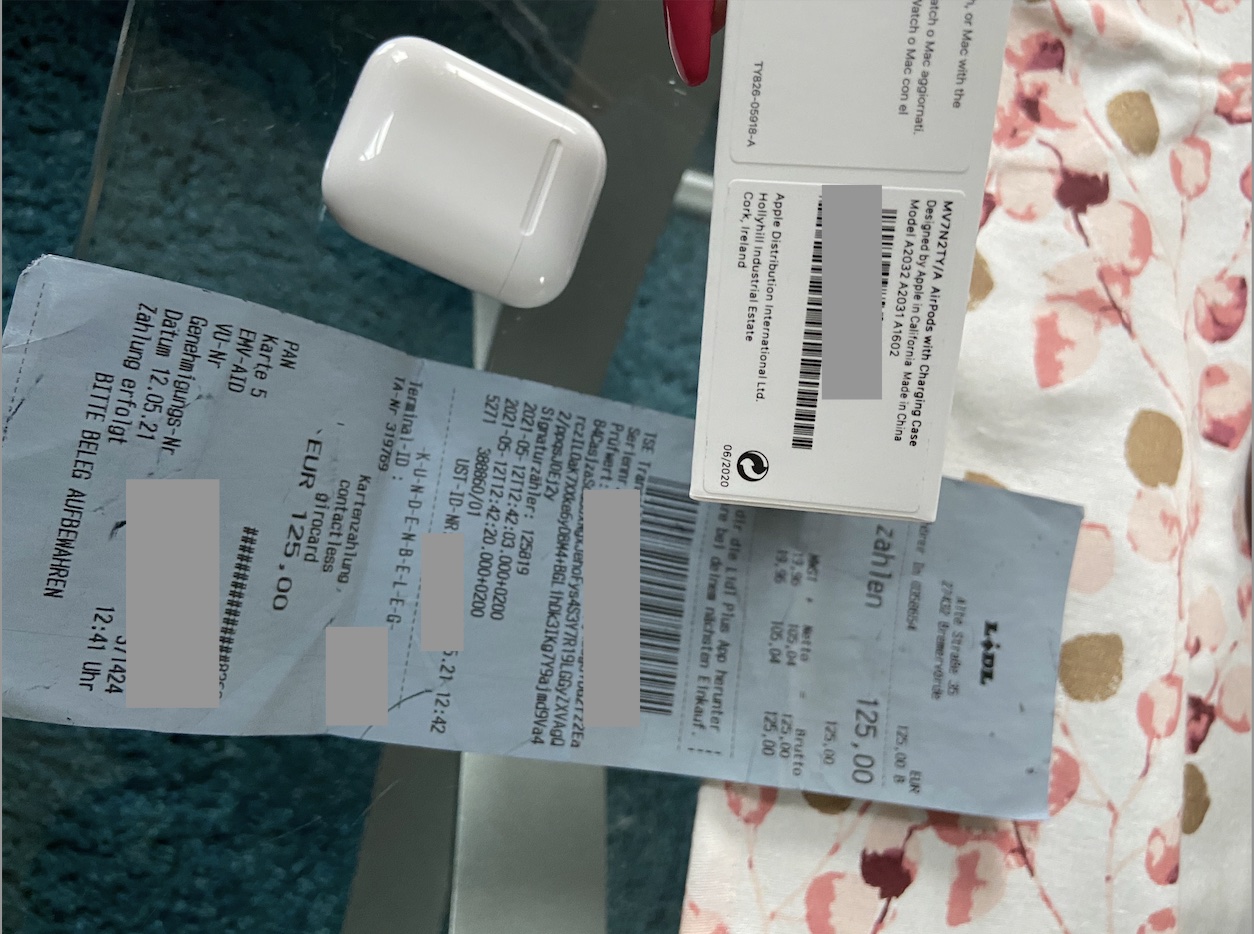 Ich habe am12.05.2021 bei Lidl AirPods gekauft. Von Anfang an gab es Probleme mit dem linken AirPod. Trotz 100% geht er nach ca 5 min aus und zeigt eine Leistung von nur noch 5% an!! Was kann ich jetzt machen um diesen Fehler zu reklamieren??