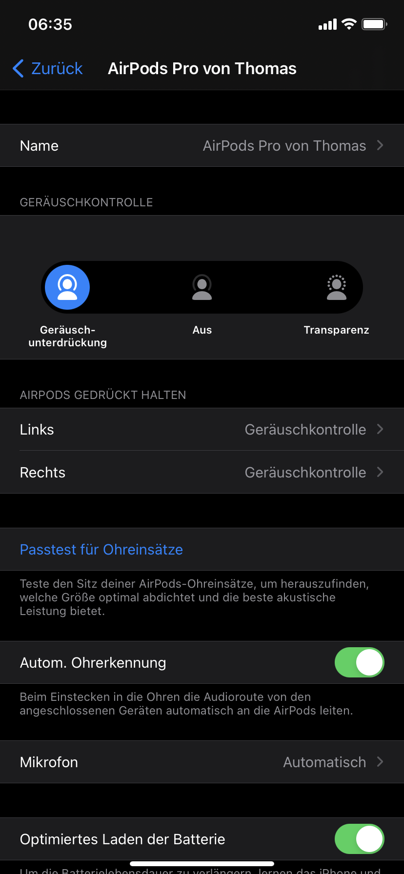 die Option, bei den bluetooth Einstellungen der AirPods beim „i“ das automatisch oder manuell einzustellen, habe ich komischerweise nicht.