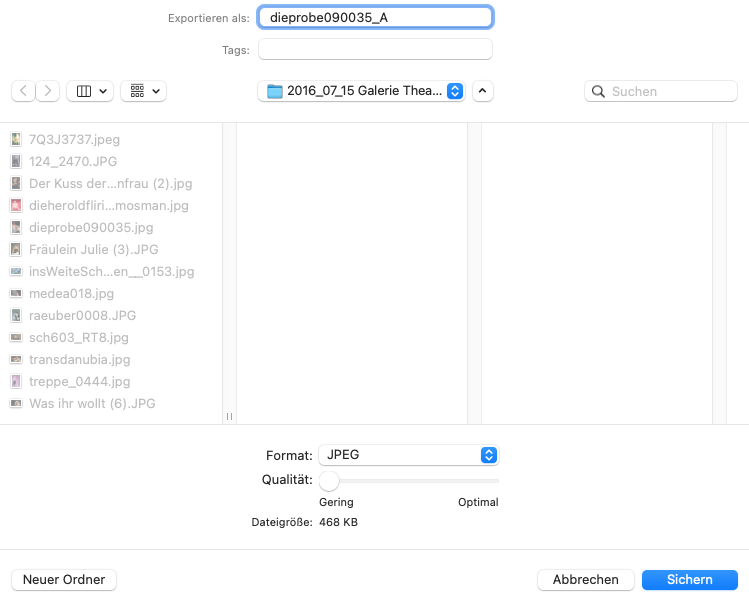 Vorschau: JPGs Dateigröße verkleinern, per Export, funktioniert nicht