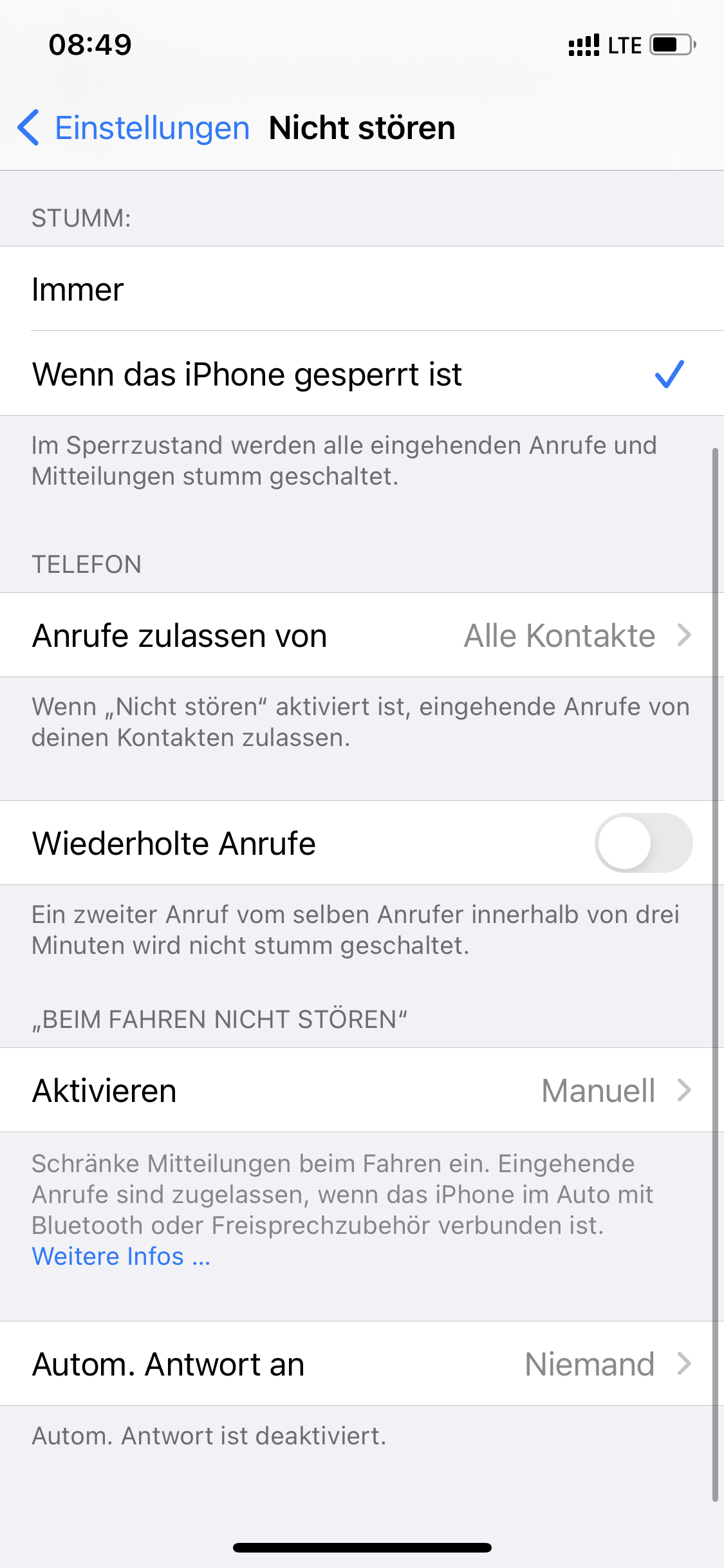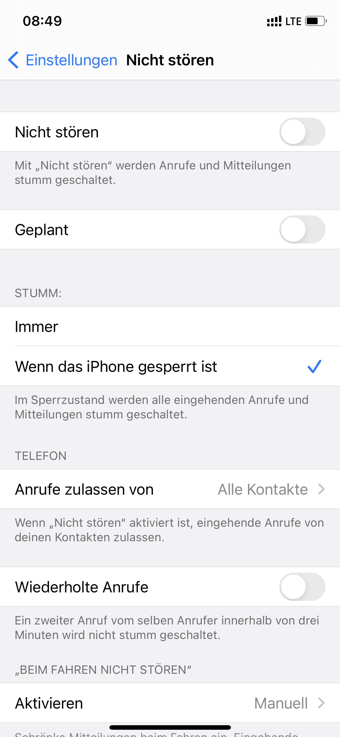 Die nicht stören Funktion habe ich ausgeschaltet. Siehe Foto.
