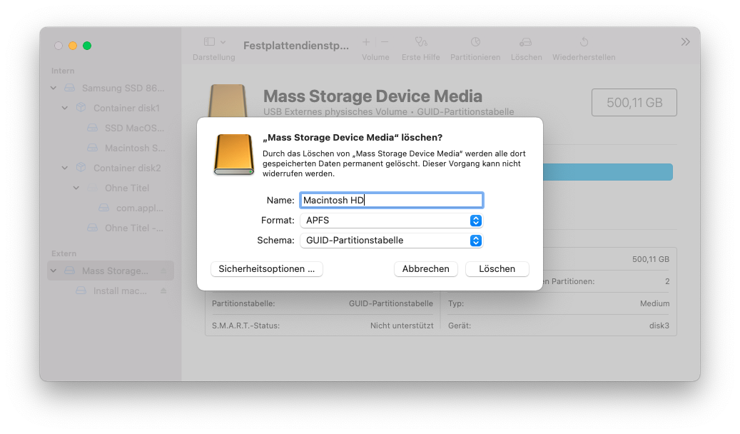 Festplatte (SSD) neu formatieren durch APFS (Apple File System)?