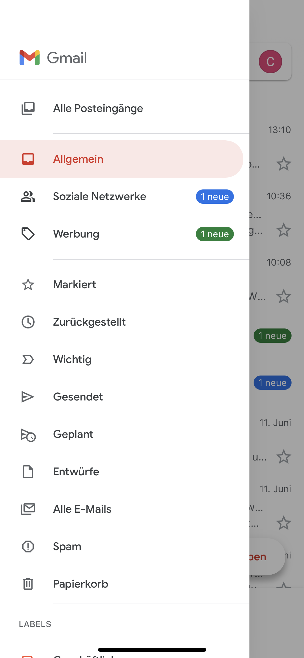 Auch die 2. Gmail Adresse ist nicht wie in der Gmail App separat sondern alles in einem Postfach.