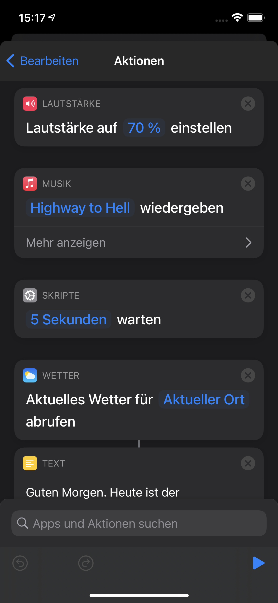 nur wenn ich dann eine Zeit eingebe und das iPhone sperre kommt eine Meldung: Automation wird ausgeführt aber man hört nichts und gleich danach kommt eine Meldung mit Automation fehlgeschlagen