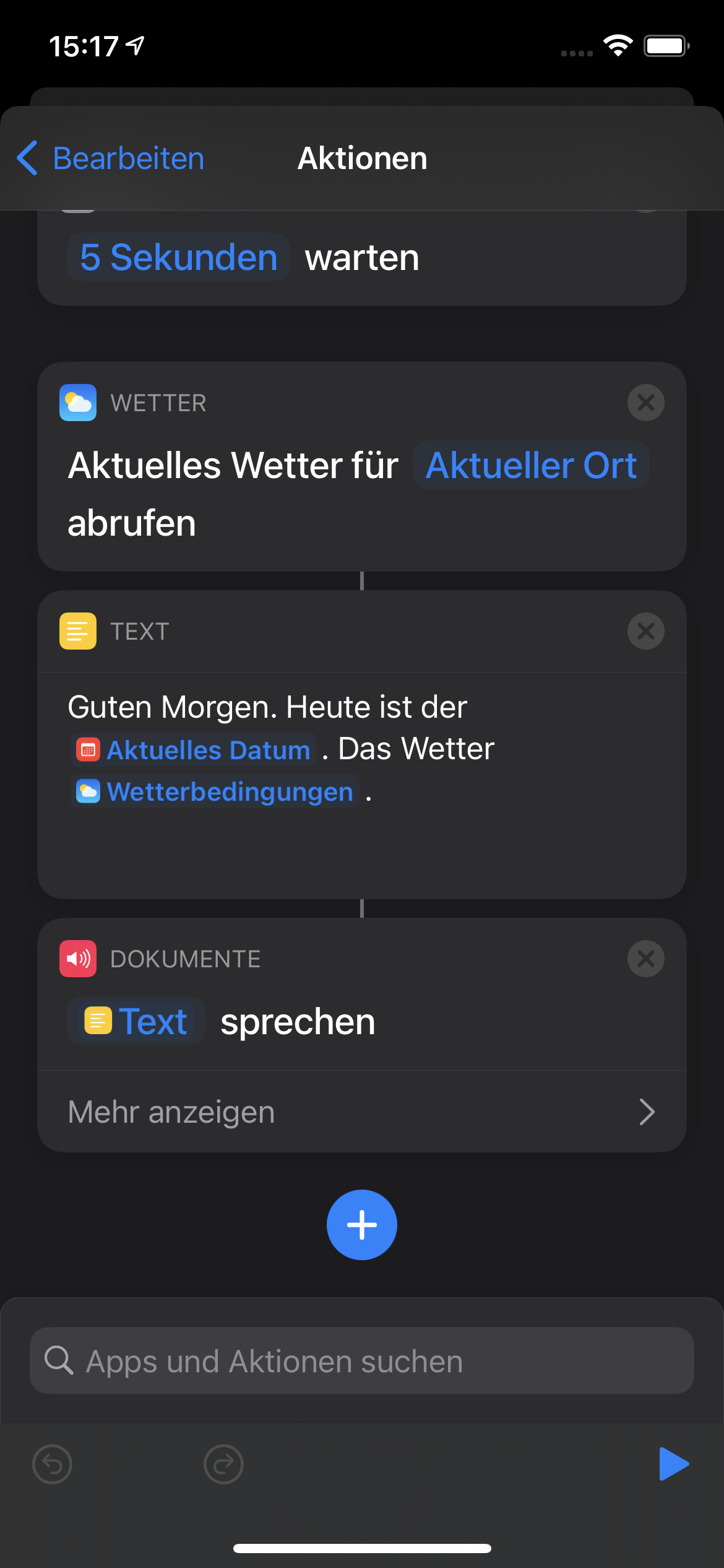 Hat jetzt nur eine Automation erstellt wo noch guten Morgen und das aktuelle Datum vorgelesen wird.