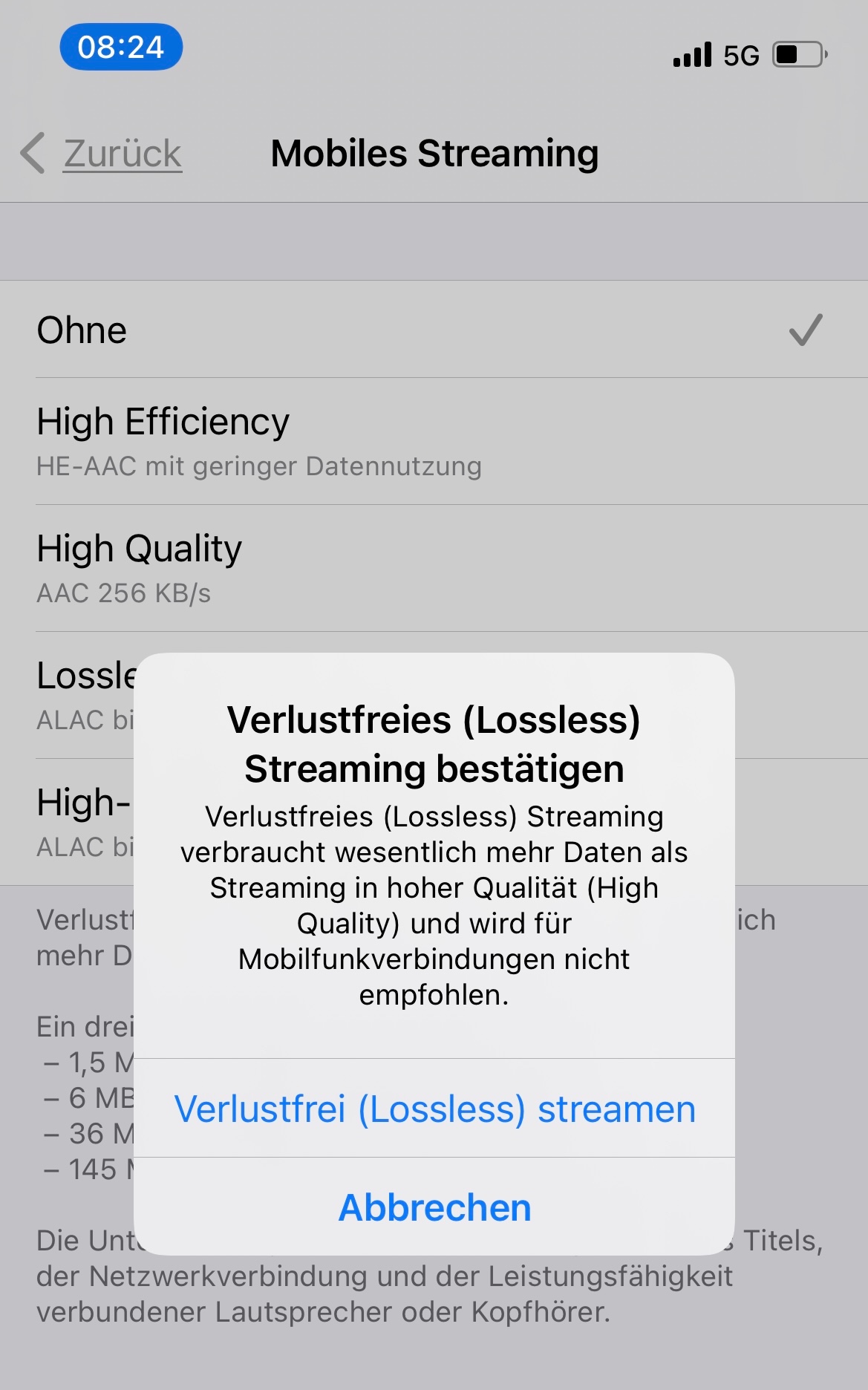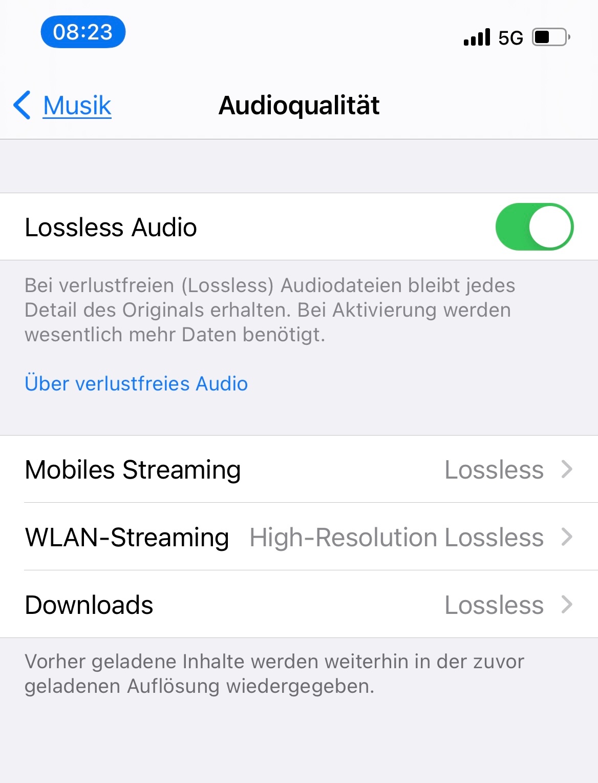 Da die Option Download am Gerät auf Lossless festgelegt ist, wird das Datenvolumen innerhalb kürzester minimiert. Ich habe sehr viele Apple Playlists, die sich alle paar Tage aktualisieren.