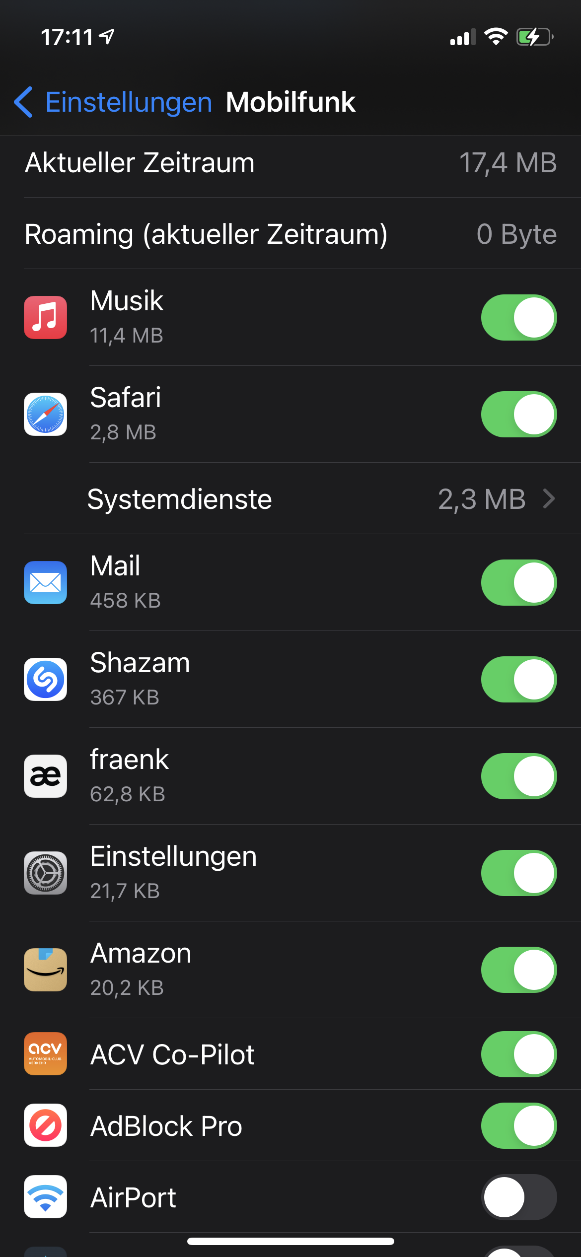 Momentan habe ich den kompletten Zugriff von diesem Dienst auf das Mobilfunknetz gesperrt.
