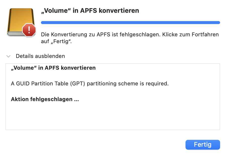- ist die Festplatte richtig formatiert APFS