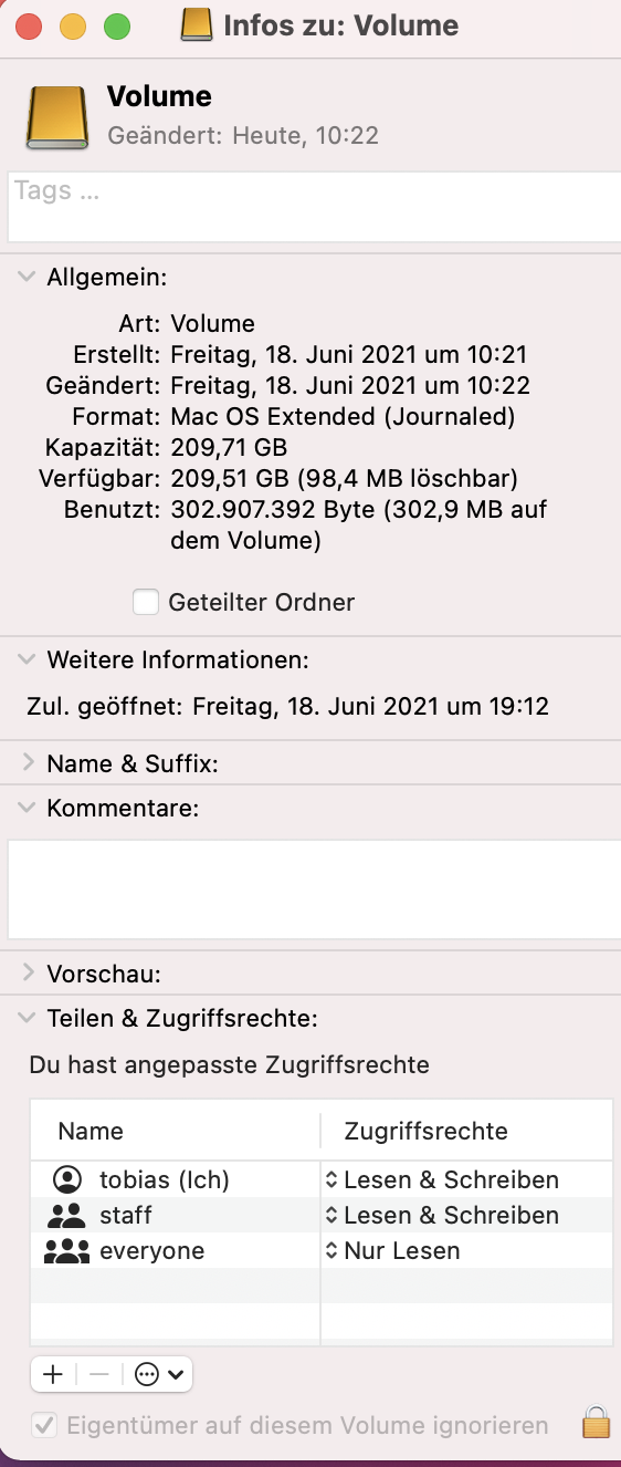 "ich gehe davon aus, dass Du eine externe Festplatte nutzt und MacOS Big Sur Version 11.4 nutzt.