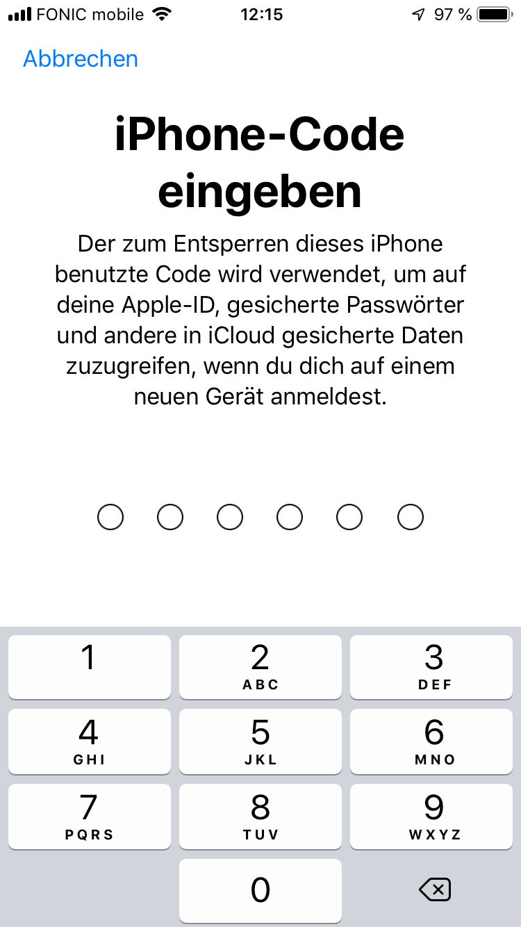 nachdem ich auf meinem MacBook Air einen neuen Account eingerichtet habe, erscheint auf meinem iPhone 6 die Meldung "Apple-Id-Einstellungen aktualisieren". Dort wird kommt dann eine Eingabemaske "iPhone-Code eingeben" mit der Möglichkeit 6 Nummern. einzugeben? Was kann ich tun???