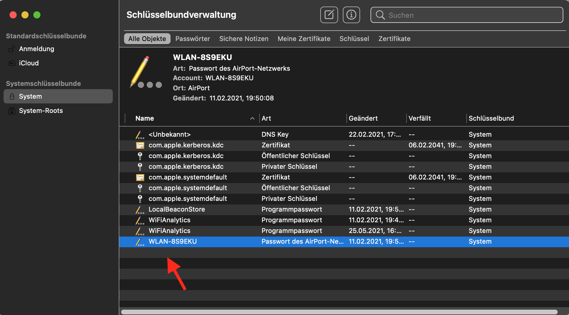 --> Dienstprogramme --> Schlüsselbundverwaltung zu finden sein