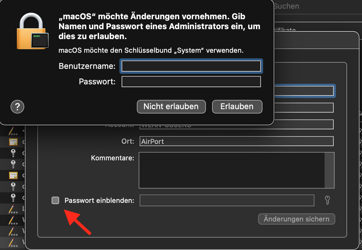 --> Erlauben --> dann wird das Passwort eingeblendet.