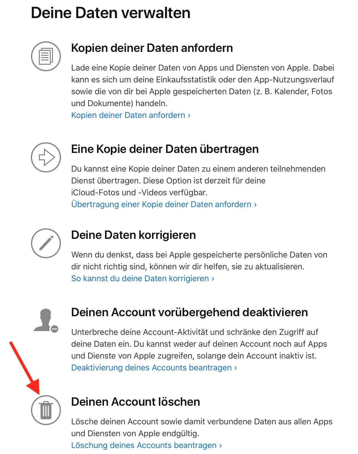 du kannst die Löschung deiner Apple ID von dieser Seite aus starten