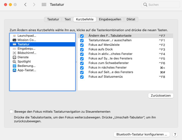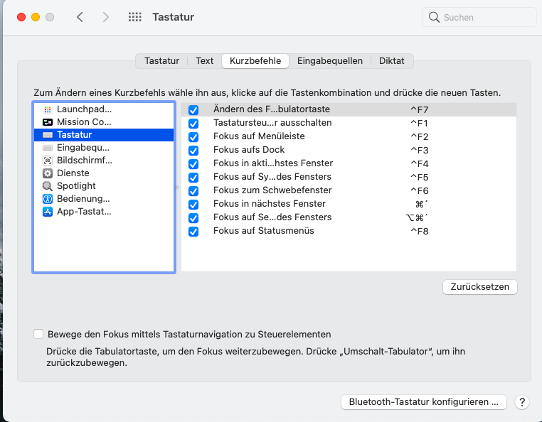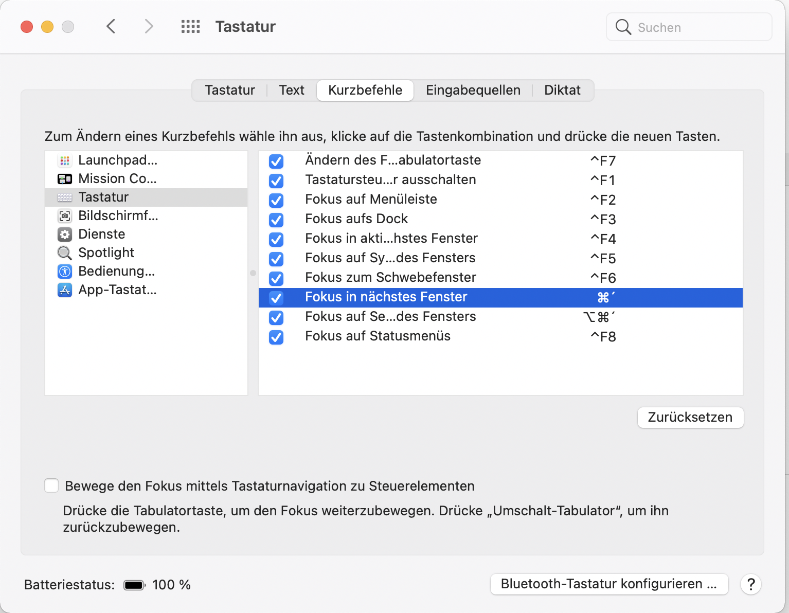 Probeweise habe ich die Tastenkombination auch auf andere Tasten geändert. Wiederum funktioniert der Wechsel zwischen den Fenstern nicht. Hier meine aktuellen Tastenkombination, habe sie zurückgesetzt: