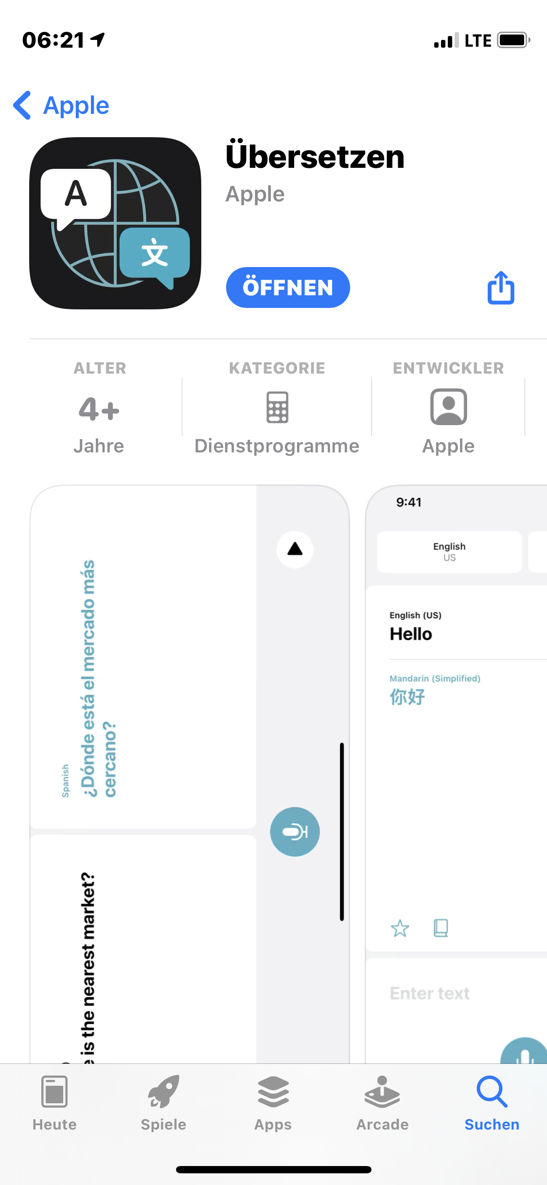 Richtig, ich meine die Apple eigene Übersetzer App (Bild1)