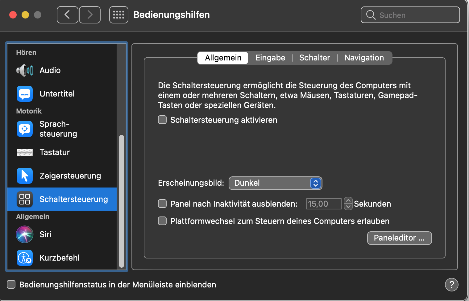 --> Systemeinstellungen --> Bedienungshilfen --> z.B. Schaltersteuerung --> Allgemein --> Schaltersteuerung aktivieren ?