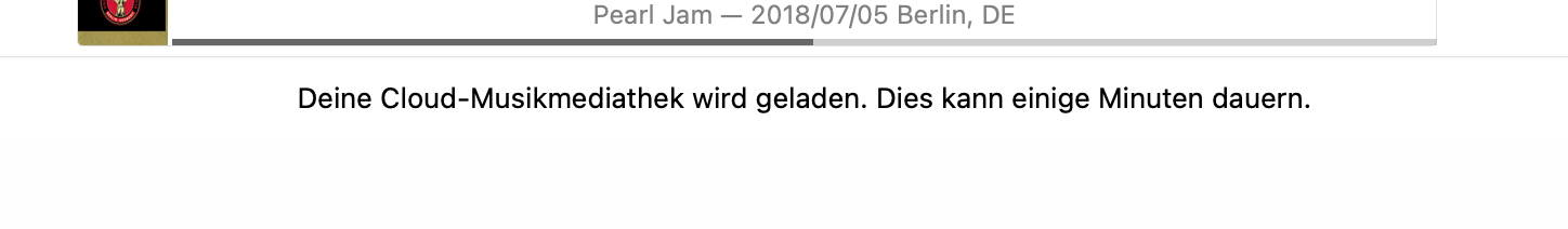 Seitdem lädt er meine Cloud-Musikmediathek! Wie kann das sein? Es ist auch keinerlei Fortschritt zu erkennen, es sind in Musik nur meine lokalen Dateien, es passiert einfach nix!