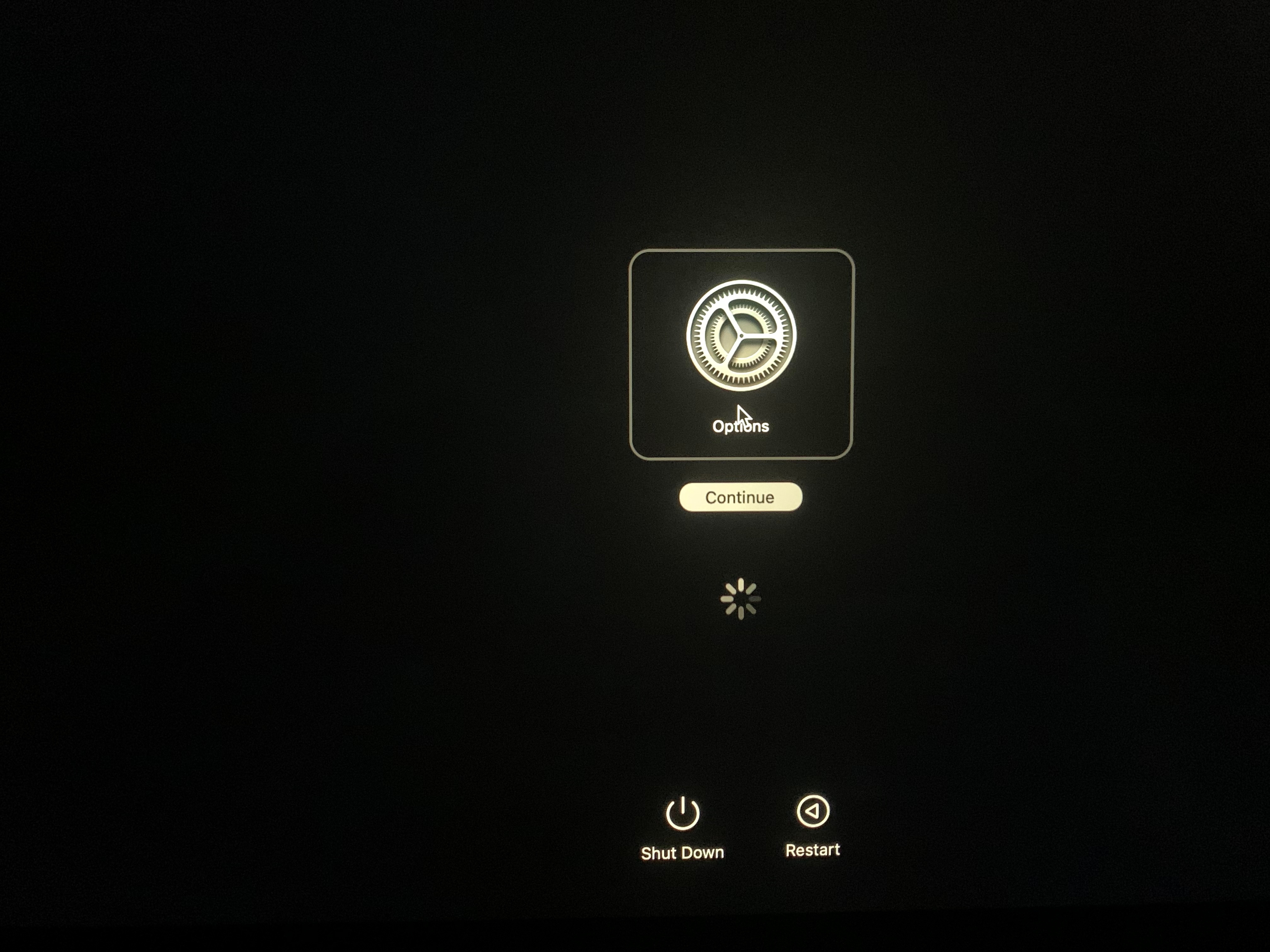 Nach dem Hoch Booten ist bei mir nur noch das Symbol mit Optionen auf dem Bildschirm zu sehen – die Macintosh HD fehlt