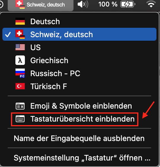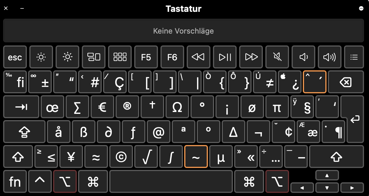 @ und Sonderzeichern auf der Apple Tastatur Schweiz mehrsprachig auf einem MacBook Pro 16" (2019) produzieren