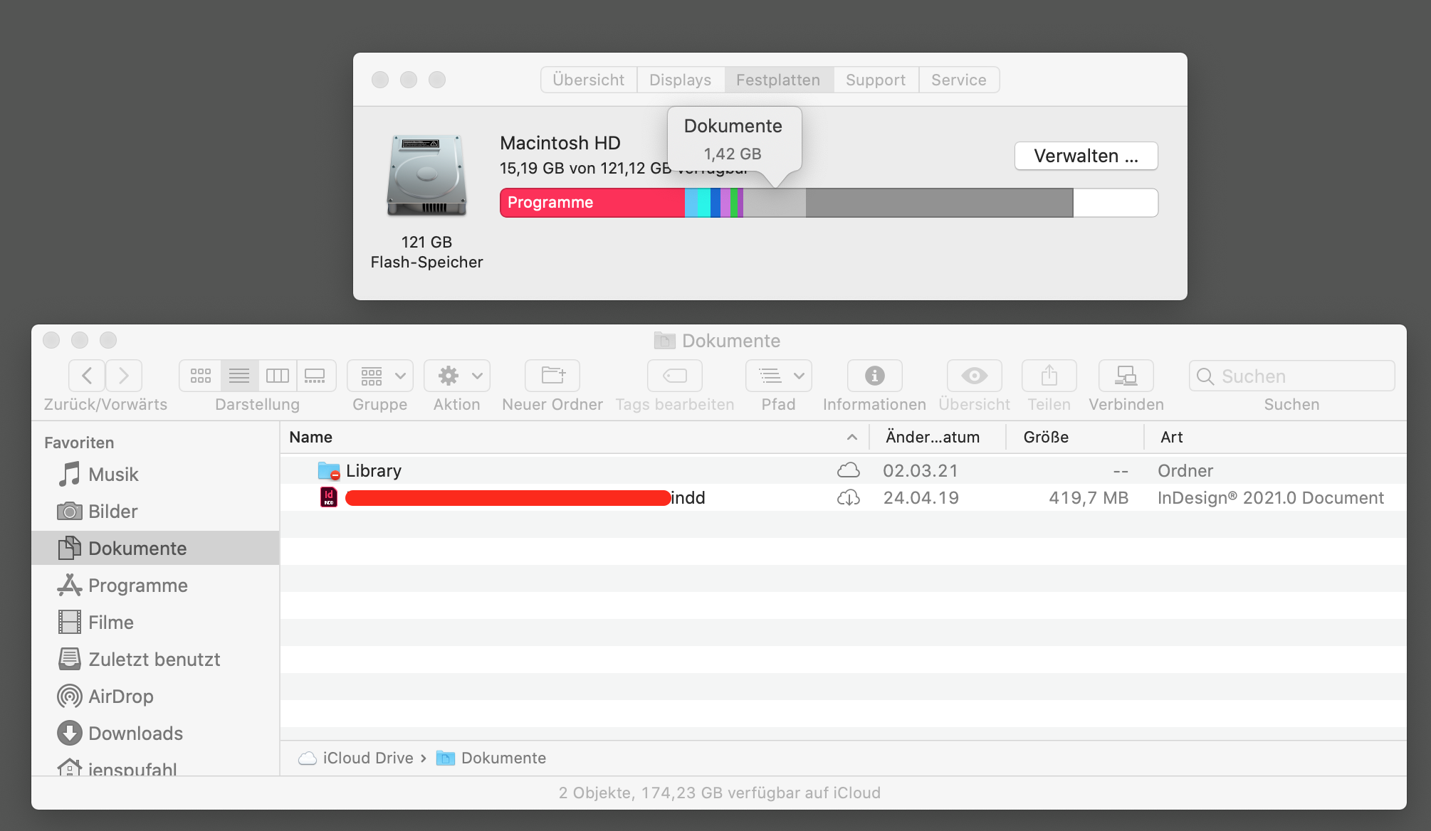 Dokument belegt Mac Speicher, obwohl es in der iCloud liegt!