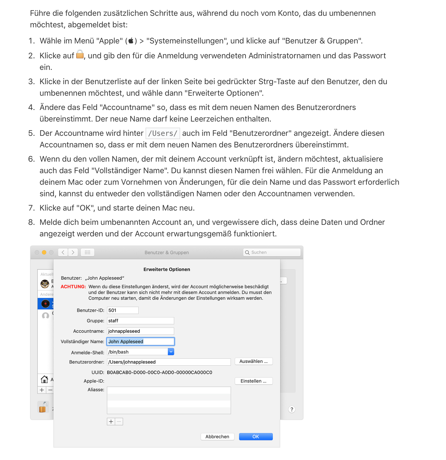 zu Help: Den Namen deines macOS-Benutzeraccounts und Benutzerordners ändern