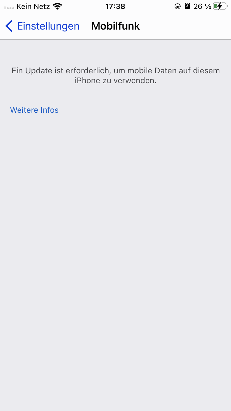 Mein handy verbindet sich nicht mehr mit dem netzanbieter. Hab bereits die sim gewechselt und das update ist neu!!!