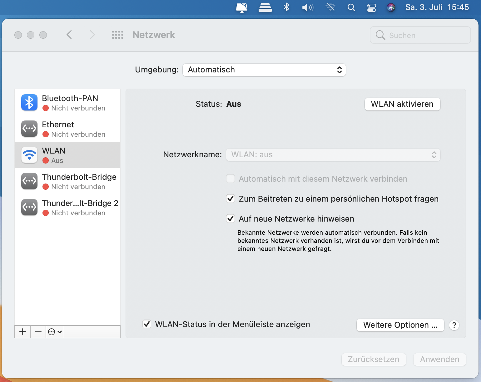 Hallo, seit dem Update vom El Capitan auf Big Sur ist das Wlan Symbol durchgestrichen und ich habe keine Möglichkeit eine Verbindung über wlan her zu stellen. Hat da jemand zufällig eine Lösung??