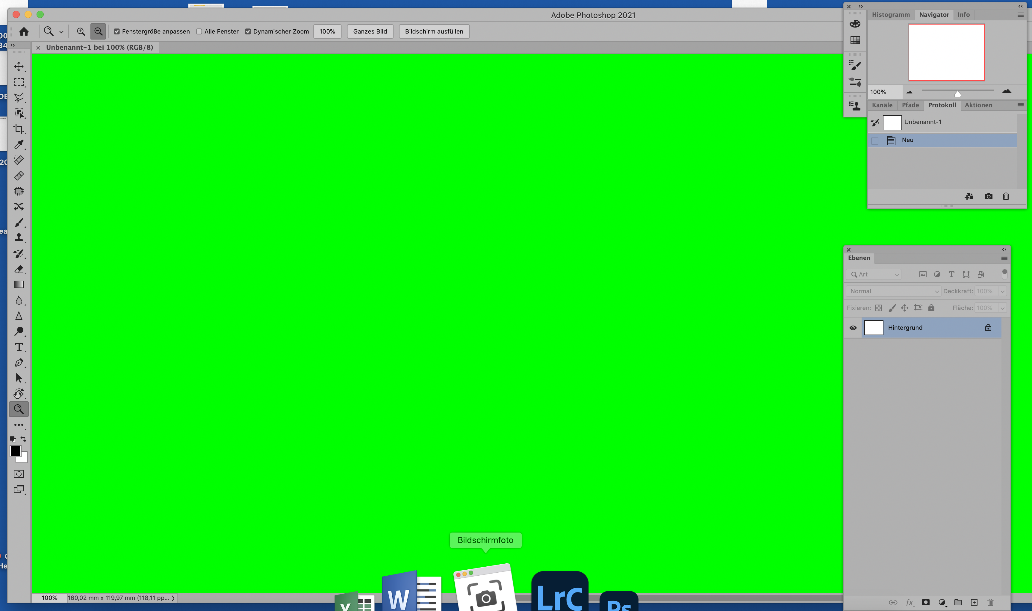 Hier zur Ansicht ein Bildschirmfoto: Photoshop 2021 im Bildschirmmodus "Standartmodus"