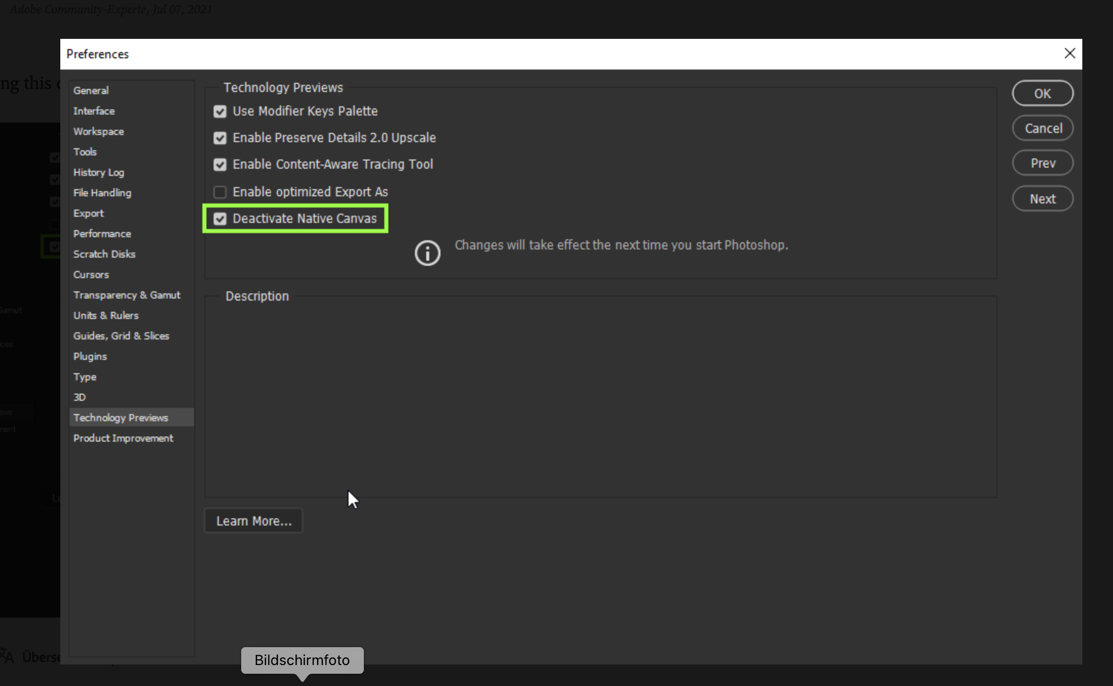 Problem m. Adobe Photoshop 2021 Standartmodus ist blockiert