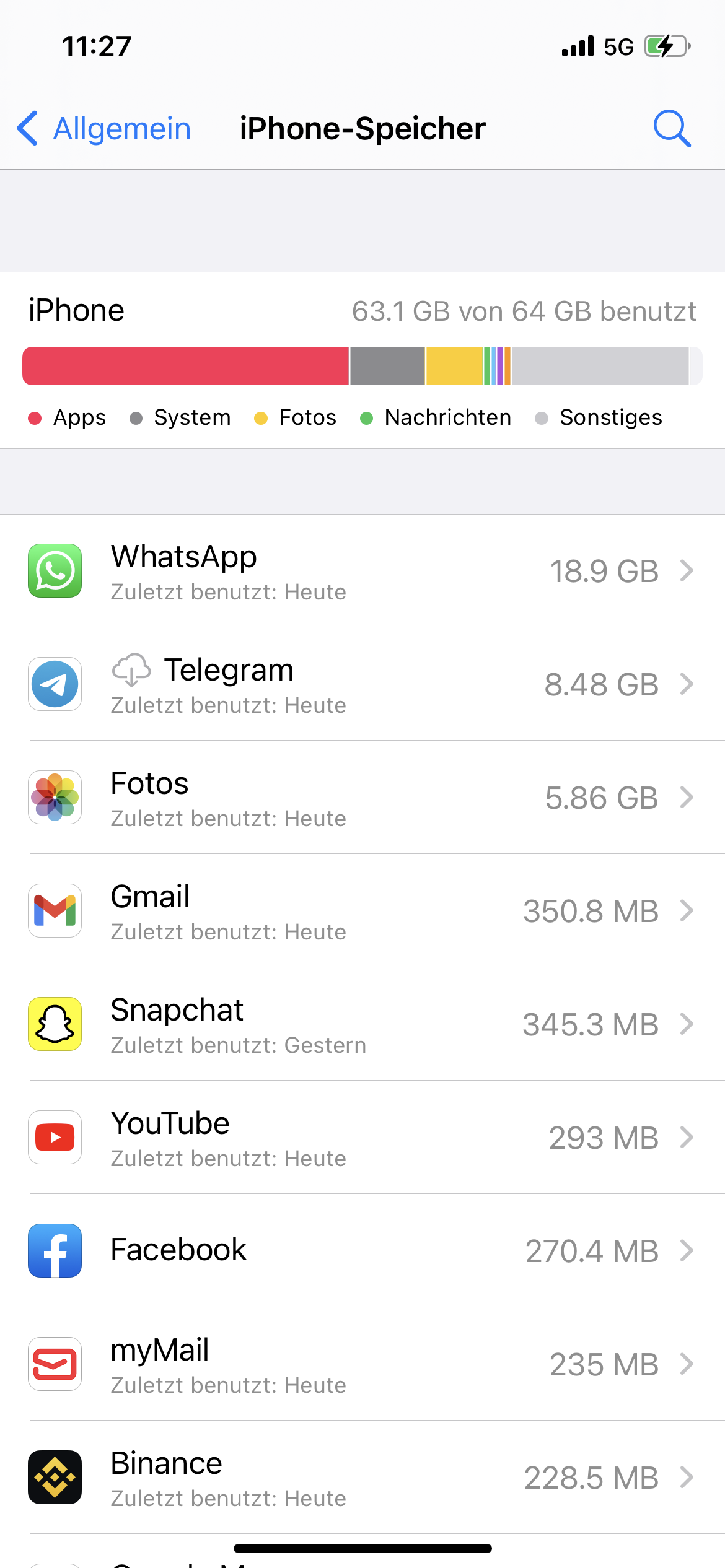 Speicher verwalten - WhatsApp Daten löschen