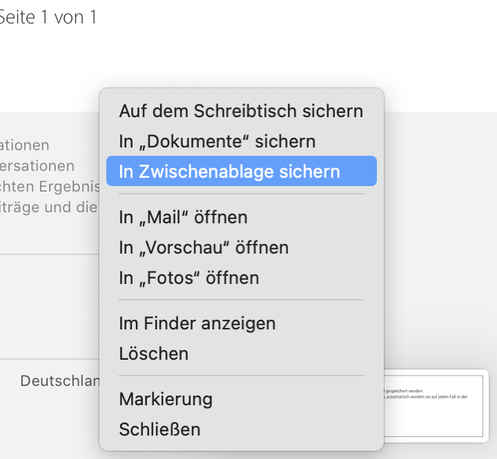 In dem Menü "Optionen" lässt sich dort übrigens diese schwebende Miniatur deaktivieren und vor allem auch der Standard-Speicherort (Schreibtisch) ändern: wählst du dort "Zwischenablage", landen die Bilder immer direkt in der Zwischenablage (und du musst auch kein "ctrl" mehr drücken).
