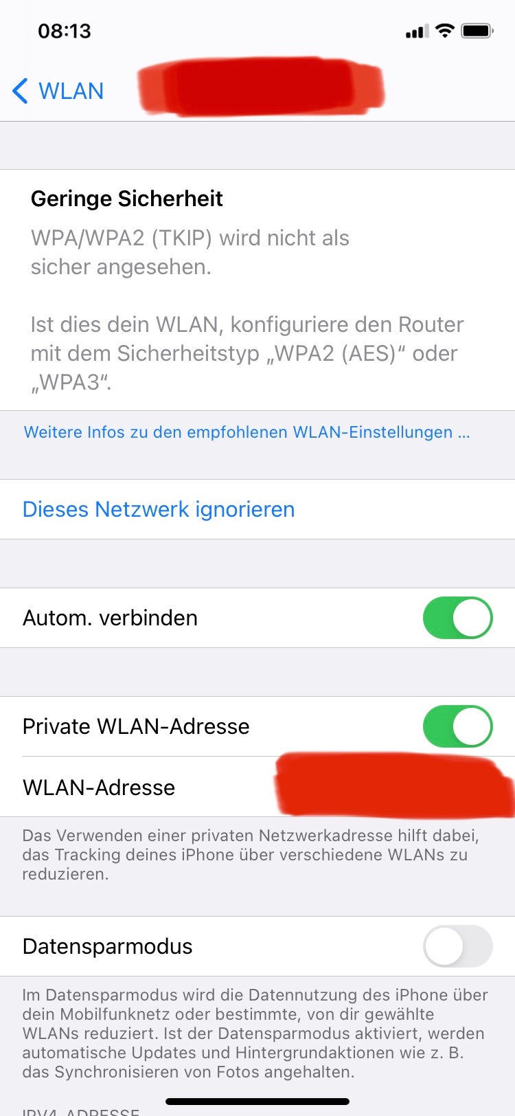 und mein Handy und iMac zeigt immer mit wlan„geringe Sicherheit „