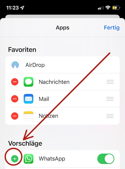 WhatsApp wird als Option nicht angezeigt für das Versenden von Fotos aus dem Album