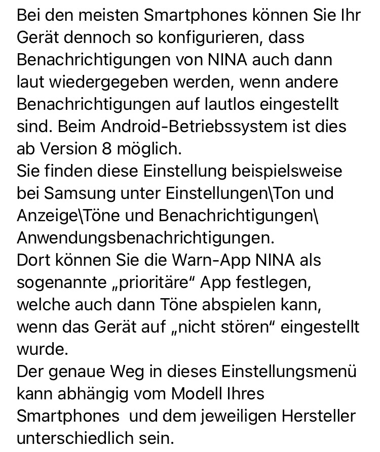Antwort vom BBK betreffend Nachfrage zur NINA wenn das Smartphone lautlos ist…