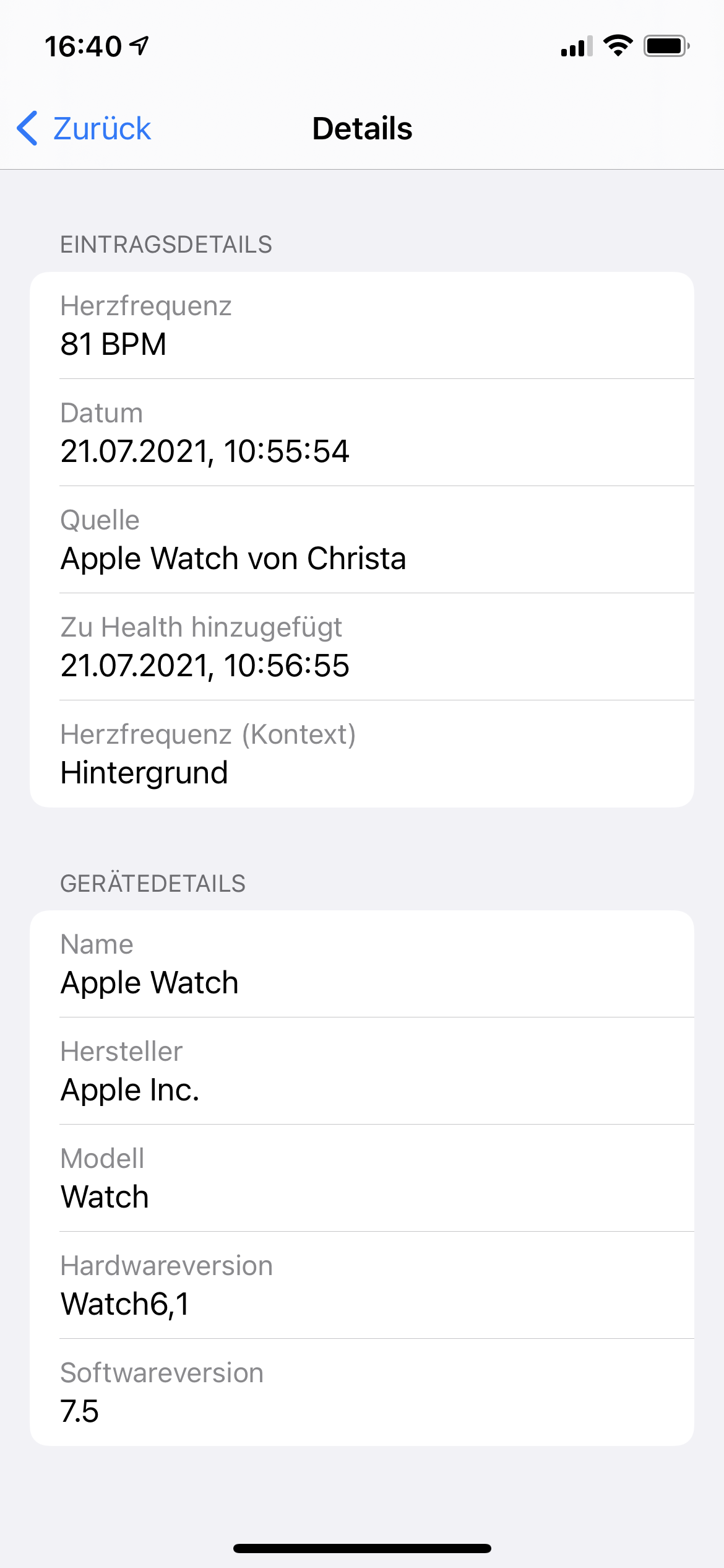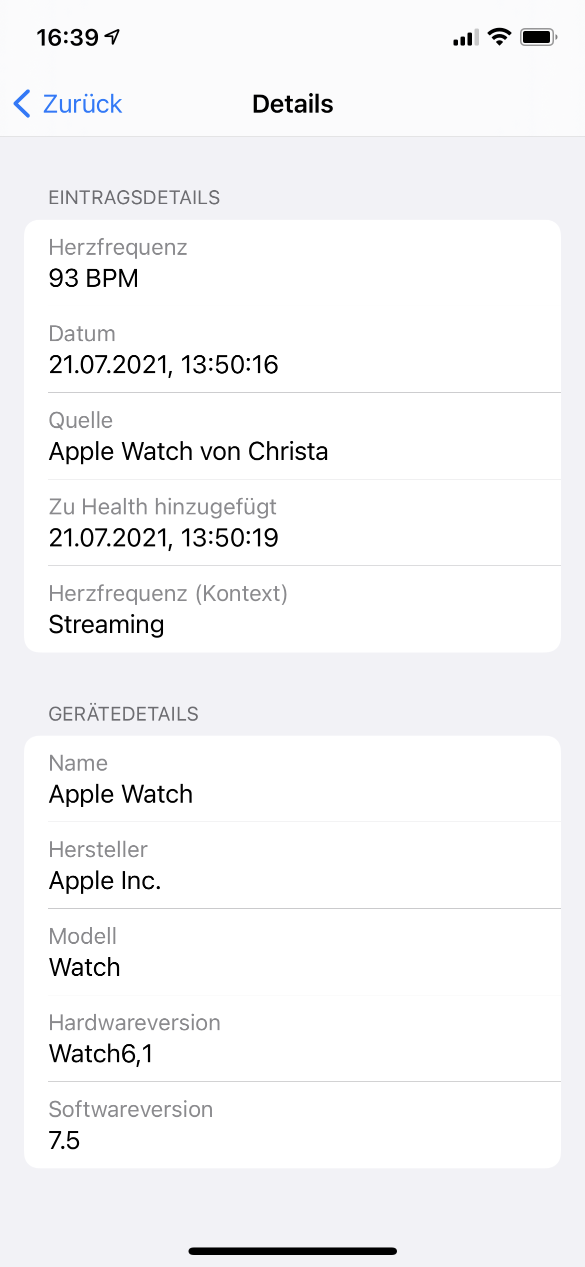 Was sagen die Unterschiede Streaming/Ruhezustand und Hintergrund bei der Herzfrequenzmessung mit der Apple Watch aus?