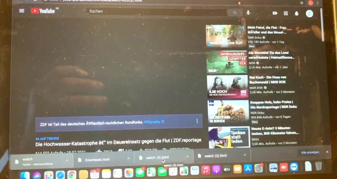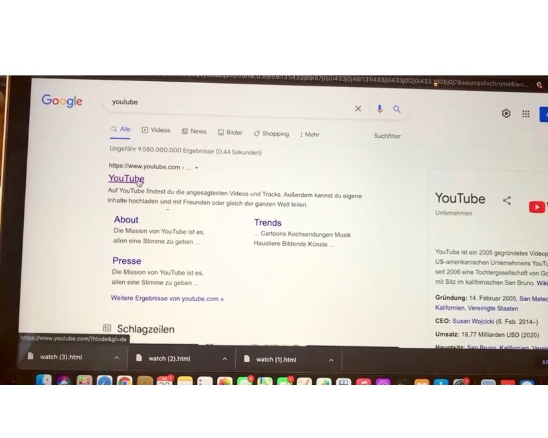 entschuldige bitte, dass ich jetzt erst antworte. Videos kann ich hier leider nicht laden. Aber die beiden Bilder verdeutlichen es vielleicht. In Bild 1 klicke ich auf YouTube und in Bild 2 hat Safari mir die “Weiterleitung” zu YouTube in ein neues (Unterste Reihe - 3 html Felder; danach 4) geöffnet. Klicke ich nun auf das neue html Feld, bin ich quasi auf der Startseite von YouTube. Klicke ich dort auf ein Video, wird mir html das 5 html Feld geöffnet und klicke ich dann dort rauf, ist das jeweilige Video zwar da; aber es lässt sich nicht abspielen, respektive wird einfach als schwarze Fläche angezeigt. beste Grüße