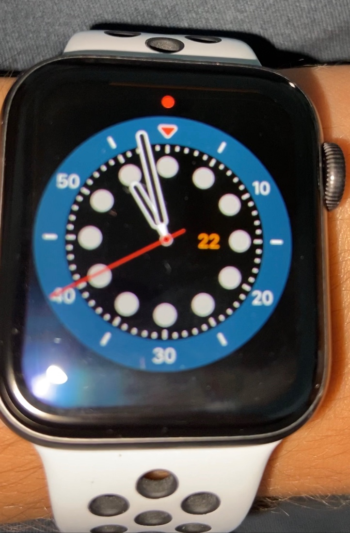 seit gestern sieht man an meiner Apple Watch Series 5 (40mm) am/ bzw im (?) oberen Displayrand einen orangenen Streifen, der jedoch nur bei (starker) Sonnen- bzw. Lichteinstrahlung zu sehen ist (siehe Bild im Anhang mit Licht aus iPhone-Taschenlampe).