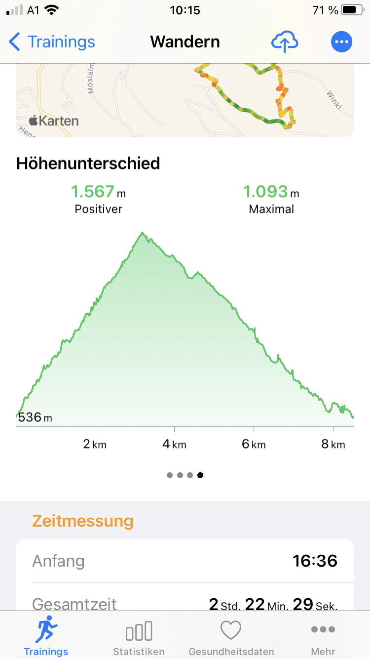 vielen Dank für die Vorschläge. Hat aber leider nicht wirklich geholfen. Nach wie vor ist der Höhenunterschied sehr daneben (ca. 500 Höhenmeter gegangen, 1500 angegeben, niedrigster und höchster Punkt passen, Siege Bild). Scheint mehr daneben zu sein, wenn ich das iPhone und die Uhr mithabe). Wenn ich z. B. Beim Laufen nur die Uhr mithabe ist es nicht so daneben?