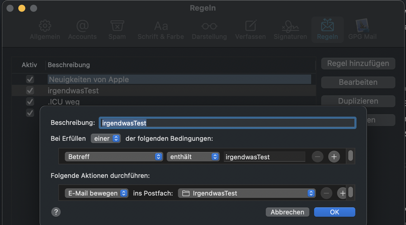 z.B das Apple Support Community Emails direkt in ein Postfach geschoben wird ohne das es in Eingang landet