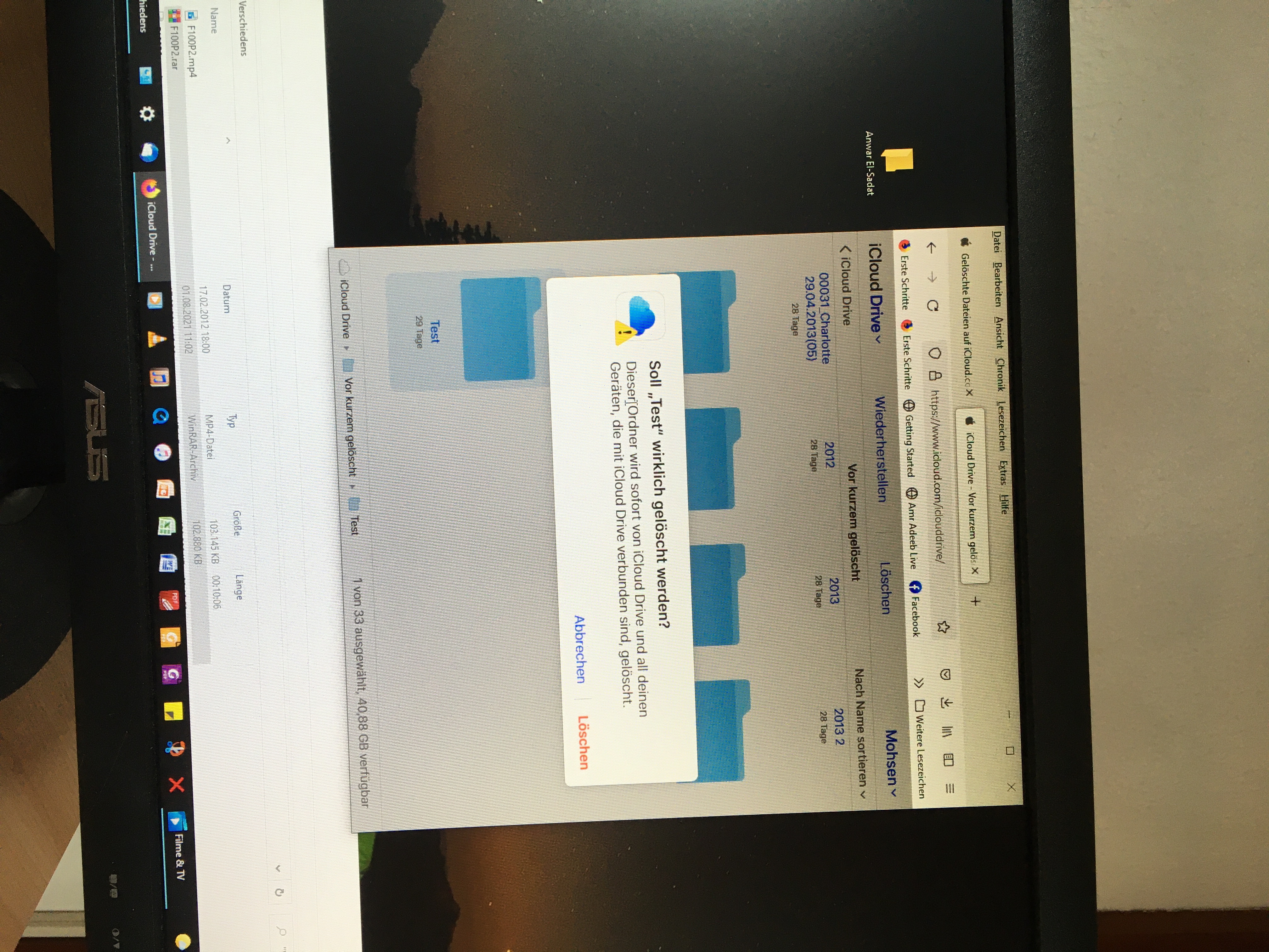 Auf deinem Foto versuchst du gerade den Ordner Test endgültig zu löschen. Wenn du das machst, ist dieser Ordner Test und alles, was in ihm drin ist, sofort und für alle Zeiten auch aus den iCloud-Ordnern auf all deinen Geräten gelöscht.