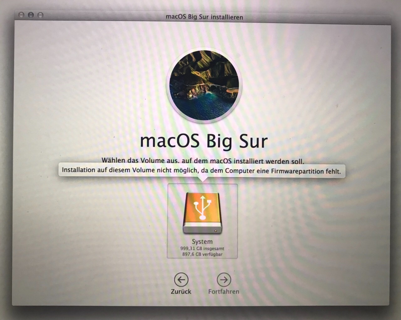 Festplatte defekt? OS X auf externer Festplatte installiert, Update auf macOS Big Sur funktioniert nicht.