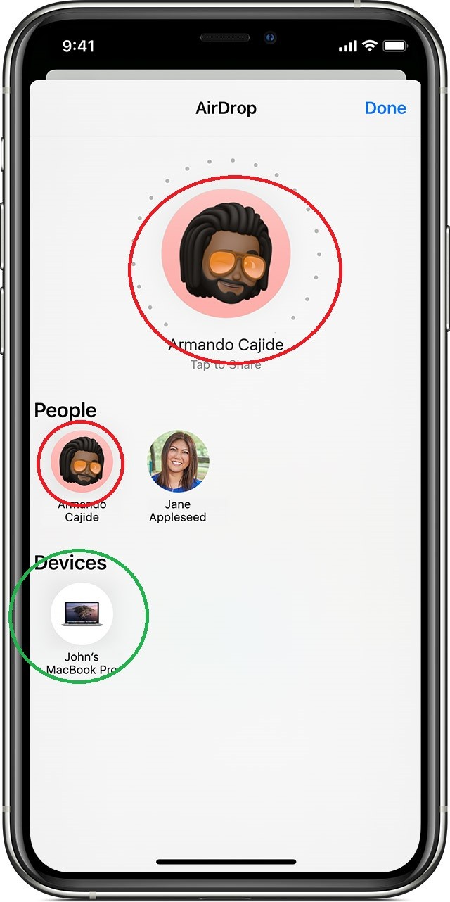 Übertragung per AirDrop geht nicht über erkannten Kontakt direkt! NUR über "weitere Personen"...