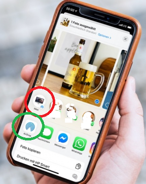Wenn ich den AirDrop-Button (Symbol grüner Kreis) drücke, öffnet sich das zweite Fenster (Bild 2).