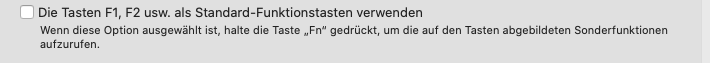 Wenn das neue Magic Keyboard als einzige Tastatur mit dem Rechner gekoppelt ist, fehlt im "Tastatur"-Dialog der Systemsteuerung auch die Option zur Anpassung der Funktion der F-Tasten: