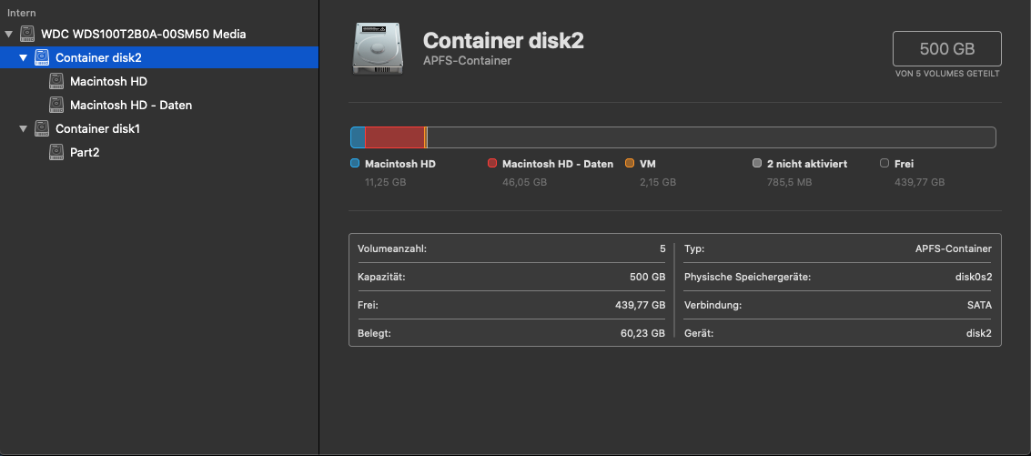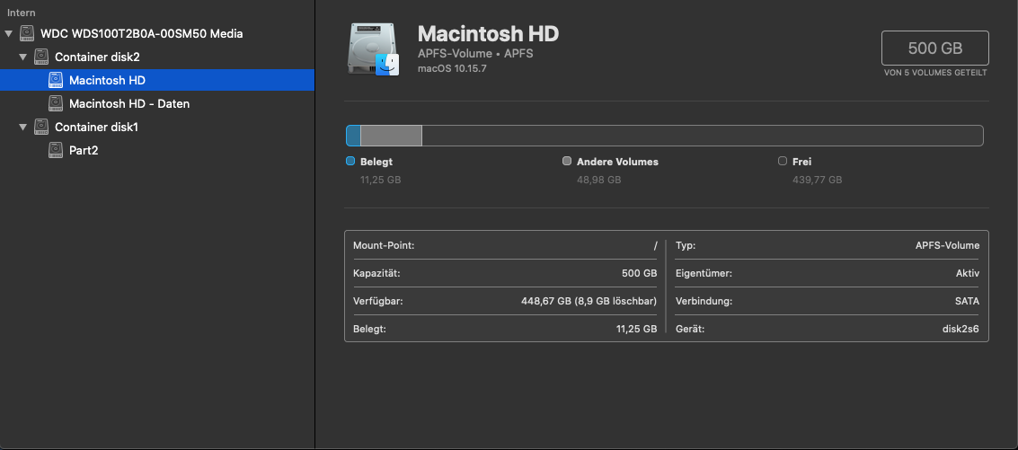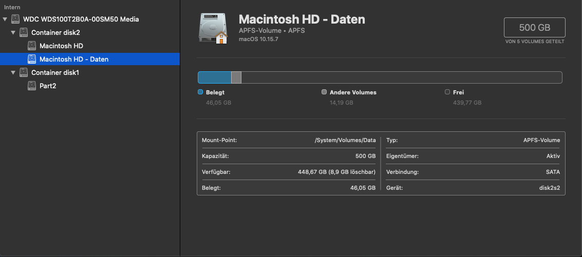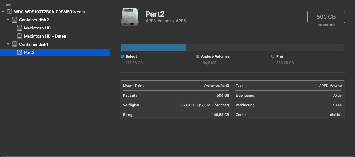 - Die Festplatte von 1TB auf 2x 500GB partitioniert (könnte ja sein, dass die Verwaltung dann meinem Mac leichter fällt.