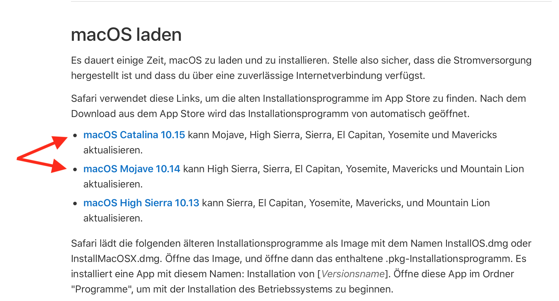 Von dieser Seite des Apple Support kannst du dann mit Safari ❗️(download klappt nur mit Safari) das Mojave(Catalina).dmg herunterladen