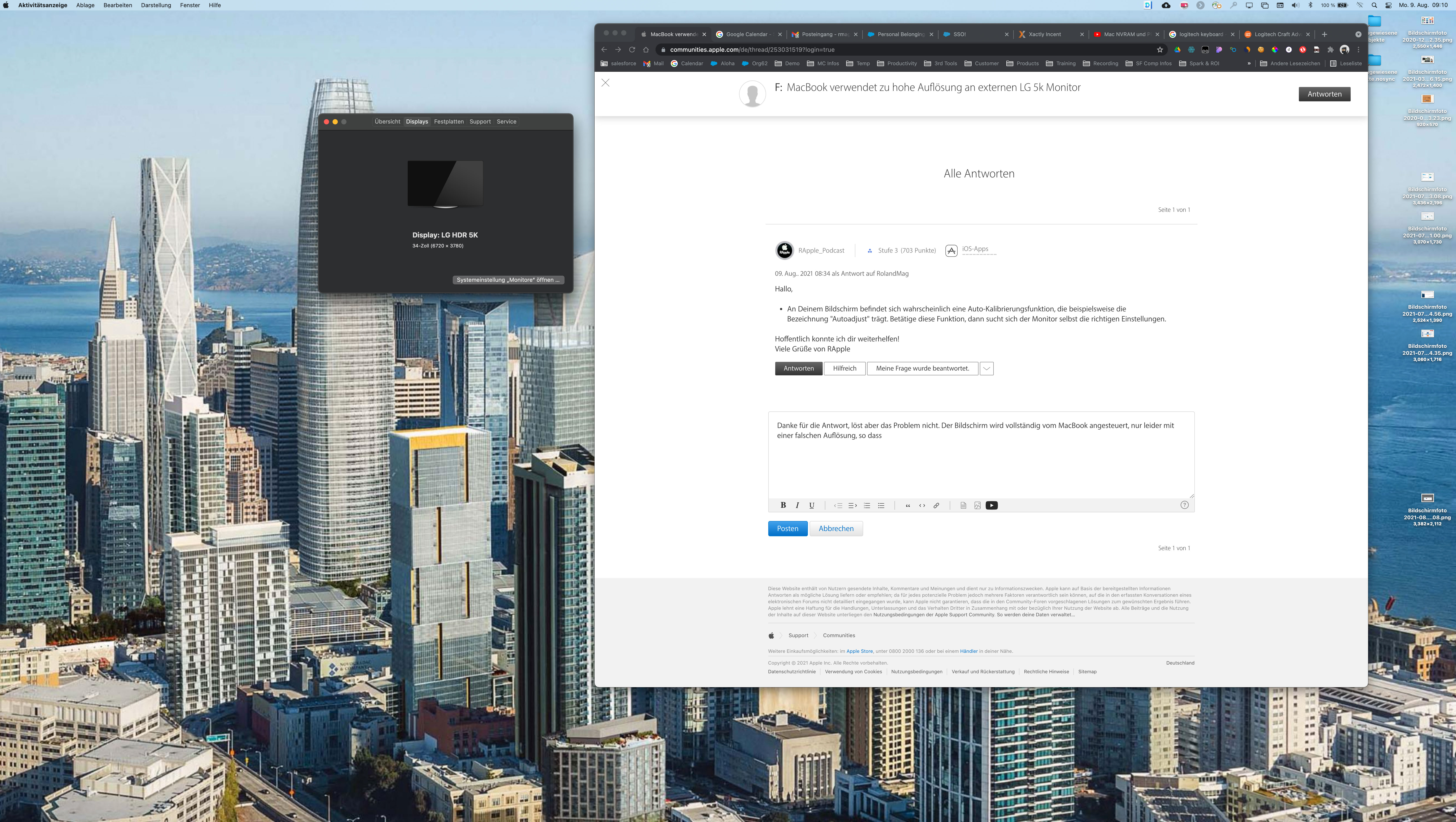 MacBook verwendet zu hohe Auflösung an externen LG 5k Monitor