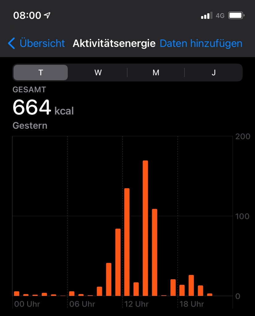 Später am Tag ist mir dann aufgefallen, dass dies in der Apple Health App nicht der Fall ist, obwohl unter den Daten der Input der Wahoo App auftaucht (s. Foto 2 und 3).