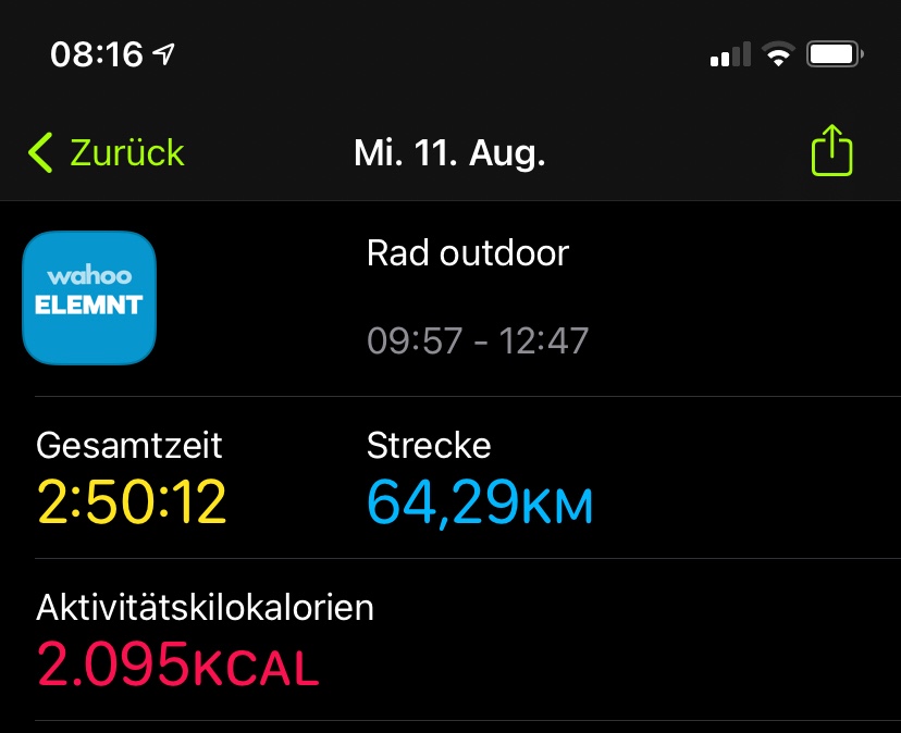 Bei meinen Fahrten trage ich die Apple Watch nicht, sondern verwende einen Brustgurt für die Herzfrequenz sowie einen Wahoo Radcomputer um das Workout etc aufzuzeichnen. Die dazugehörige App hat Schreibrechte für Apple Health und bis gestern ging auch alles gut.